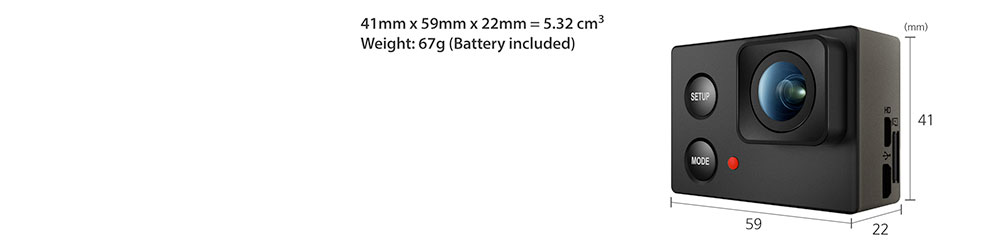 De kleine 82gram wegende camera is ondanks zijn supercompacte formaat zeer gebruiksvriendelijk. Het geïntegreerde 2” LCD-scherm en WiFi bieden je een zeer makkelijke en ergonomische manier om de camera te bedienen en maken dit een action camera waar iedereen mee overweg kan.